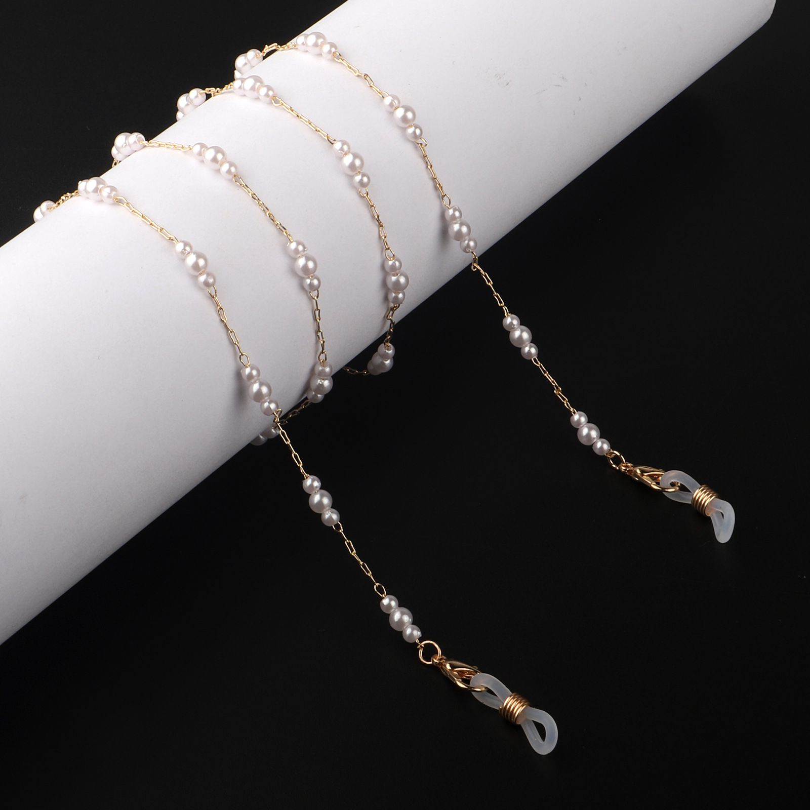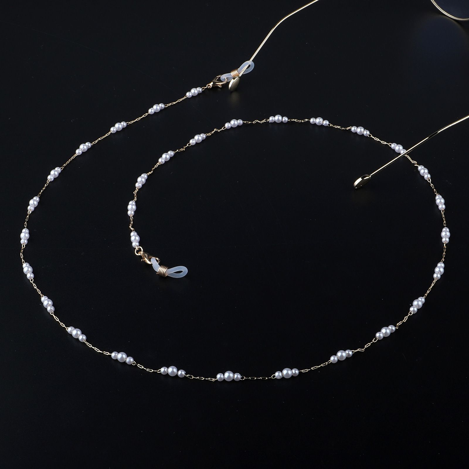 Gold-colored metal non-slip chain, with large and small pearl, for glasses and masks GL975