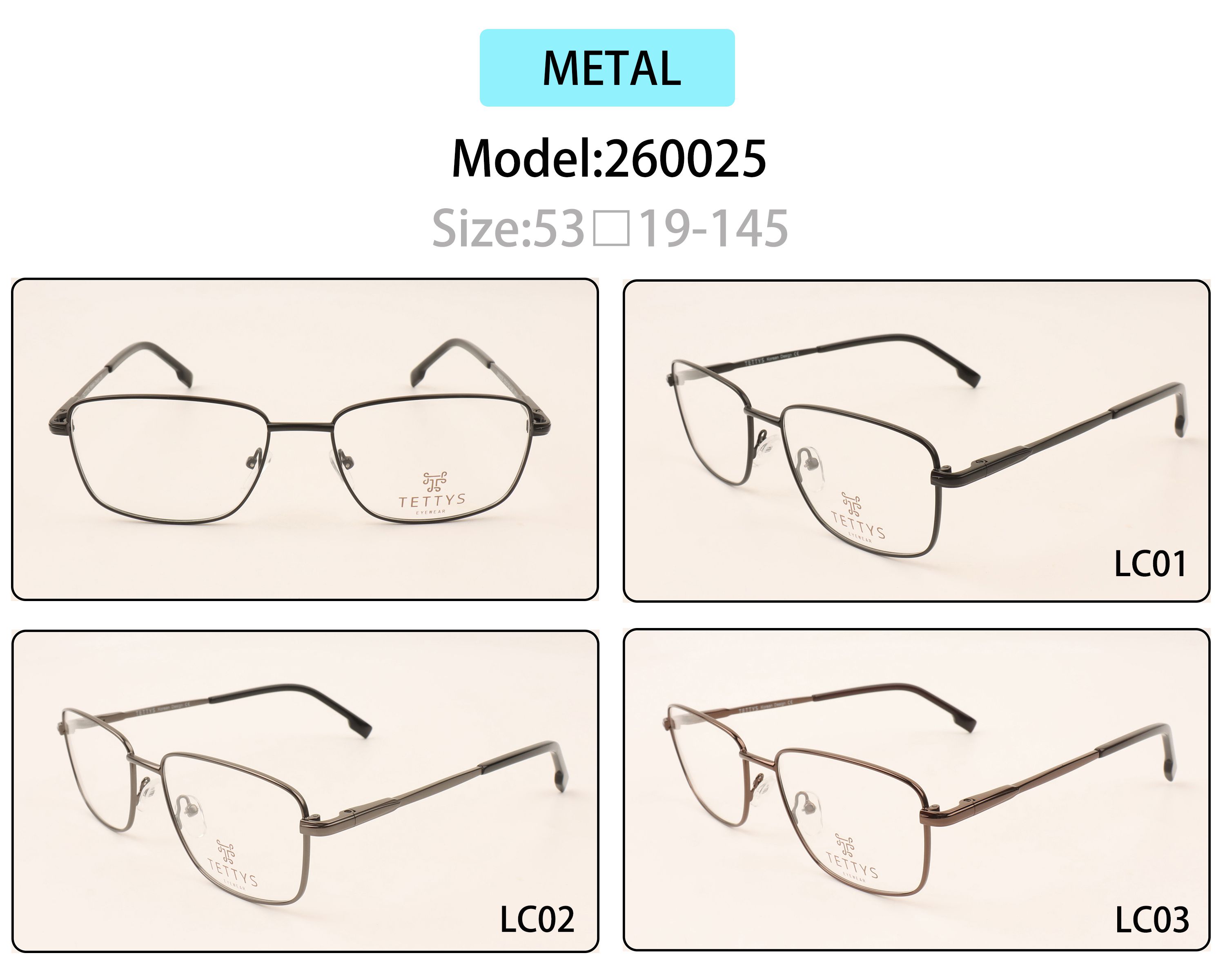 Metal eyeglasses frame for men with spring hinges 260025 (item in stock)