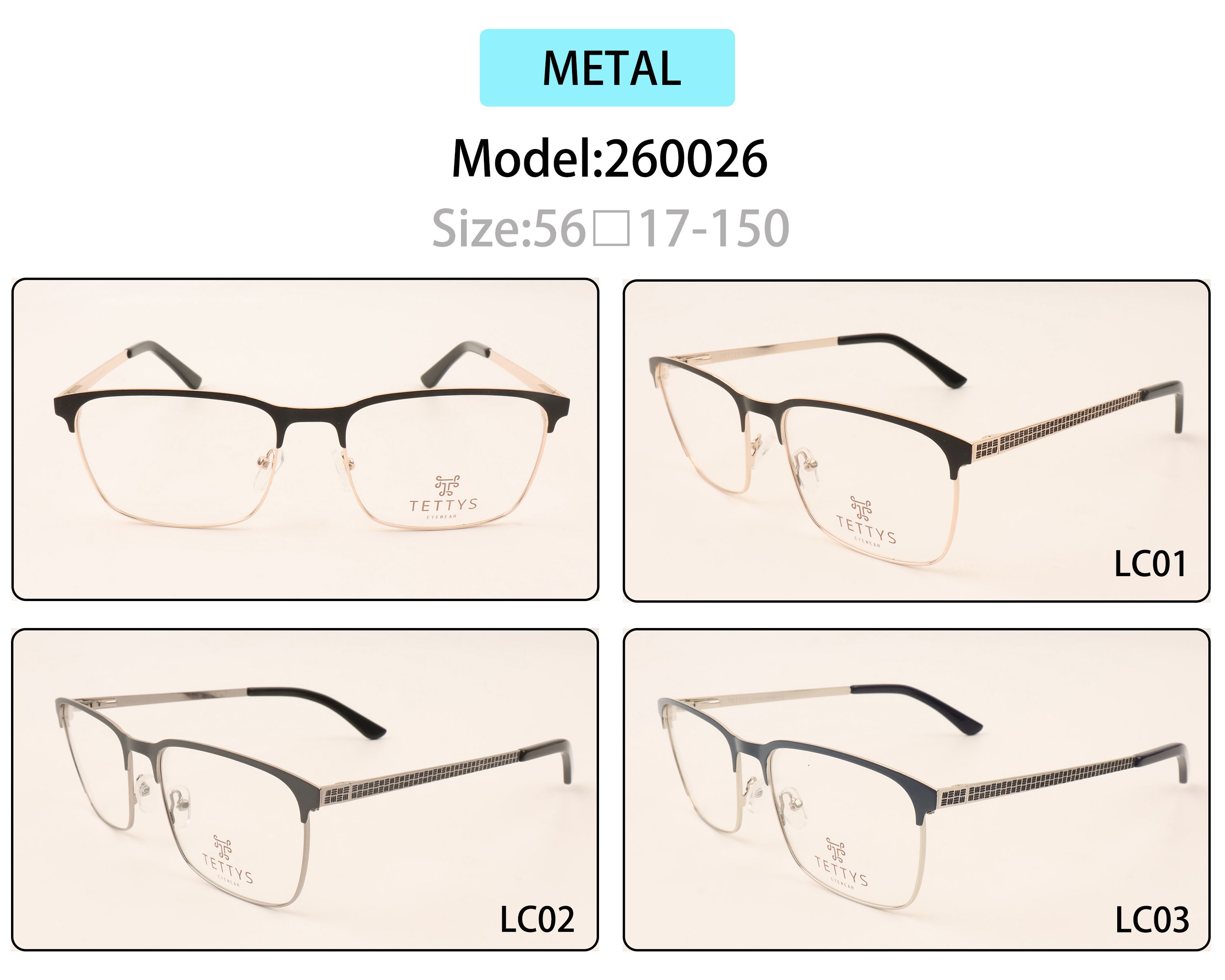 Metal eyeglasses frame for men with spring hinges 260026 (item in stock)