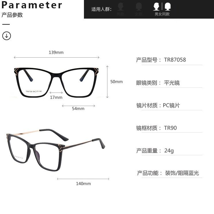 - Frame material: TR90 plastic