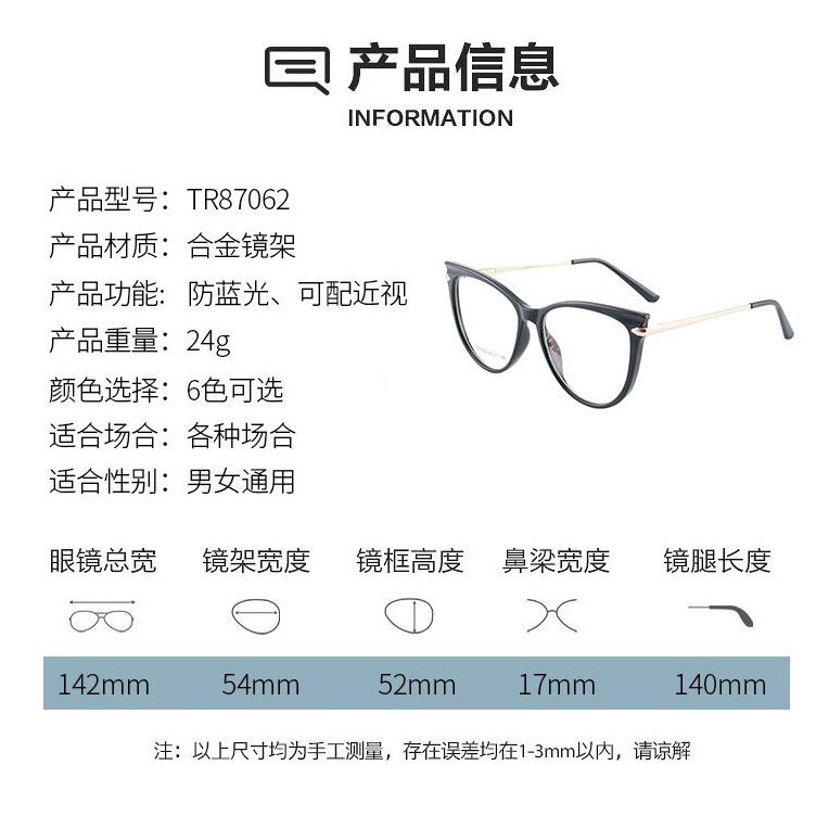 - Size: lens width - 54 mm, bridge - 17 mm, temple length - 140 mm