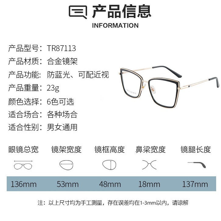 - Size: lens width - 53 mm, bridge - 18 mm, temple length - 137 mm