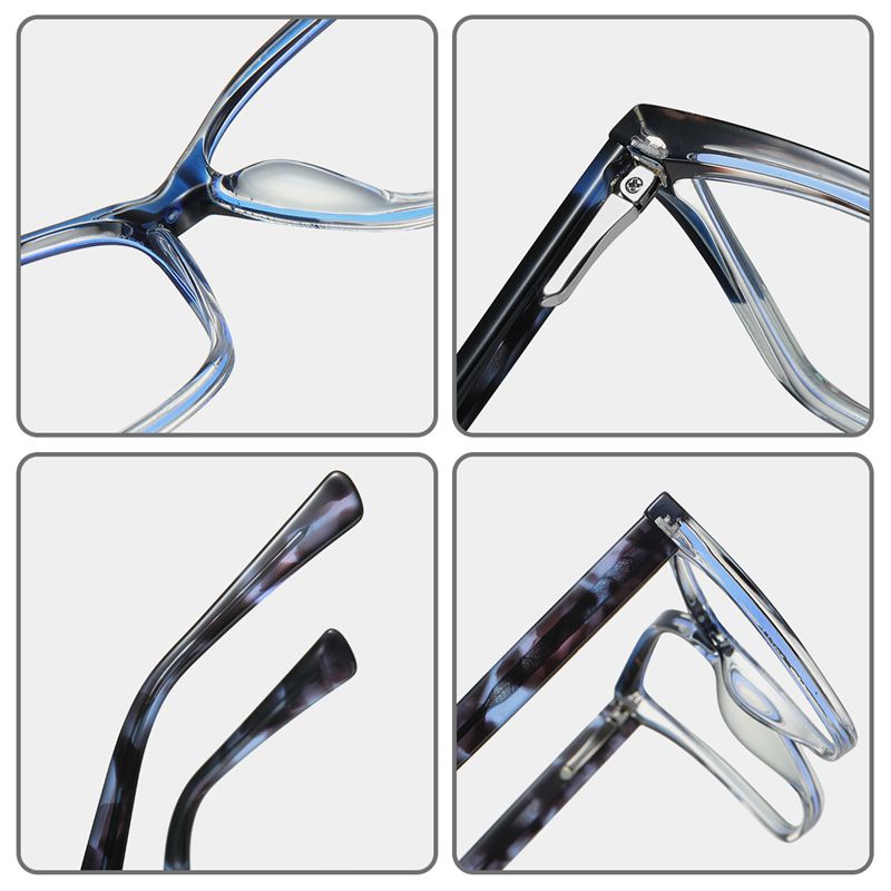 Plastic frames for glasses. The frames hold their shape well, at the same time are flexible in use when making glasses, are of high quality, have pleasant tactile properties, are resistant to damage, are lightweight, and have hypoallergenic properties. Many models are decorated with rhinestones and equipped with elegant temples and spring hinges.