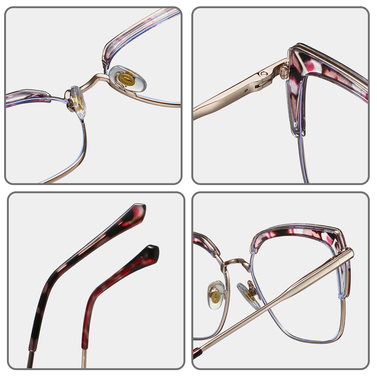 - Temple material: CP plastic, metal