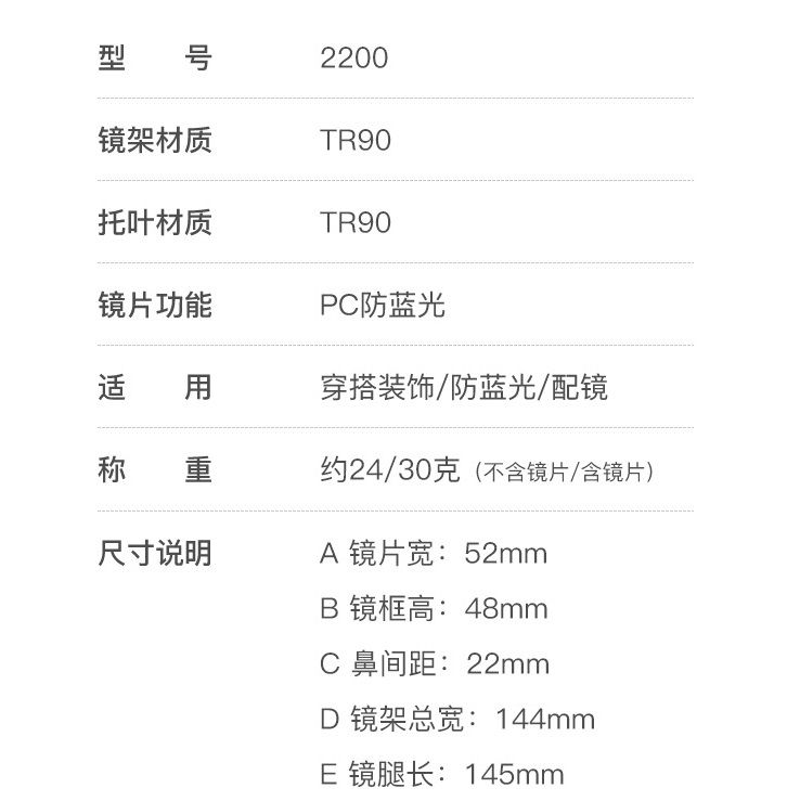 - Lens material: polycarbonate, 1.8 mm thick, blue ray cut