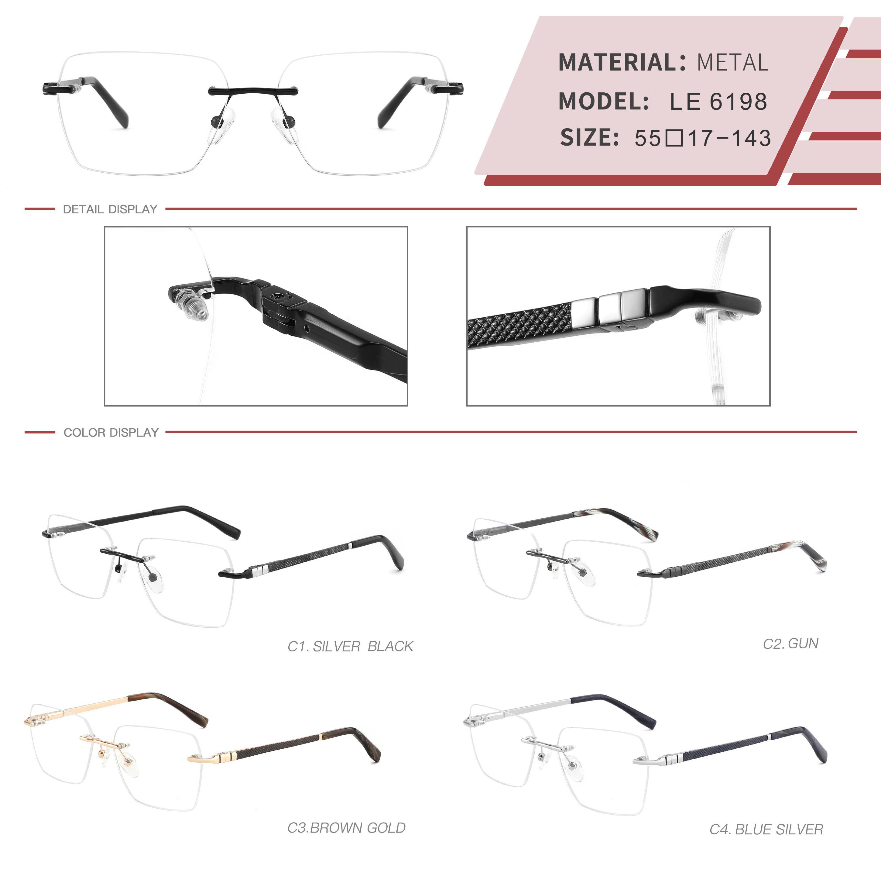 Metal rimless on screws frame for men with spring hinges LE6198-DA