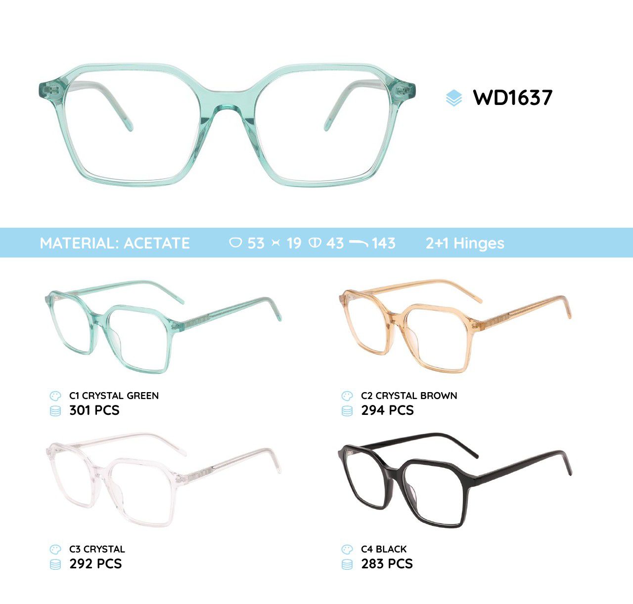 Glasses frames are plastic, acetate, milled. The frames hold their shape well, at the same time are flexible in use when making glasses, are of high quality, have pleasant tactile properties, are resistant to damage, are lightweight, and have hypoallergenic properties. Many models are decorated with rhinestones, with elegant temples and flex hinges. Fashionable design. This collection of high quality frames is individually controlled. Our store offers a low price for goods in this category for wholesale. CE standard (European Conformity).