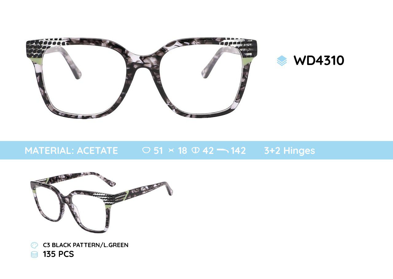 Glasses frames are plastic, acetate, milled. The frames hold their shape well, at the same time are flexible in use when making glasses, are of high quality, have pleasant tactile properties, are resistant to damage, are lightweight, and have hypoallergenic properties. Many models are decorated with rhinestones, with elegant temples and flex hinges. Fashionable design. This collection of high quality frames is individually controlled. Our store offers a low price for goods in this category for wholesale. CE standard (European Conformity).