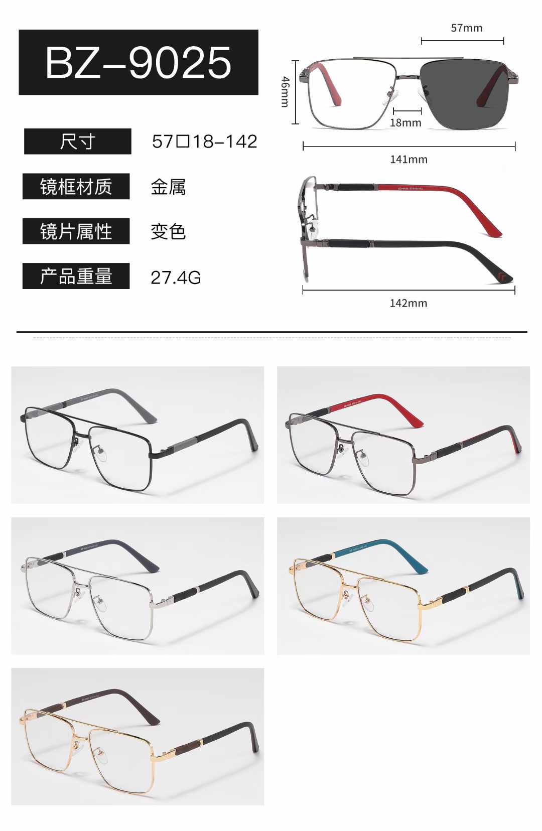 Metal photochromic glasses Wilibolo BZ-9025