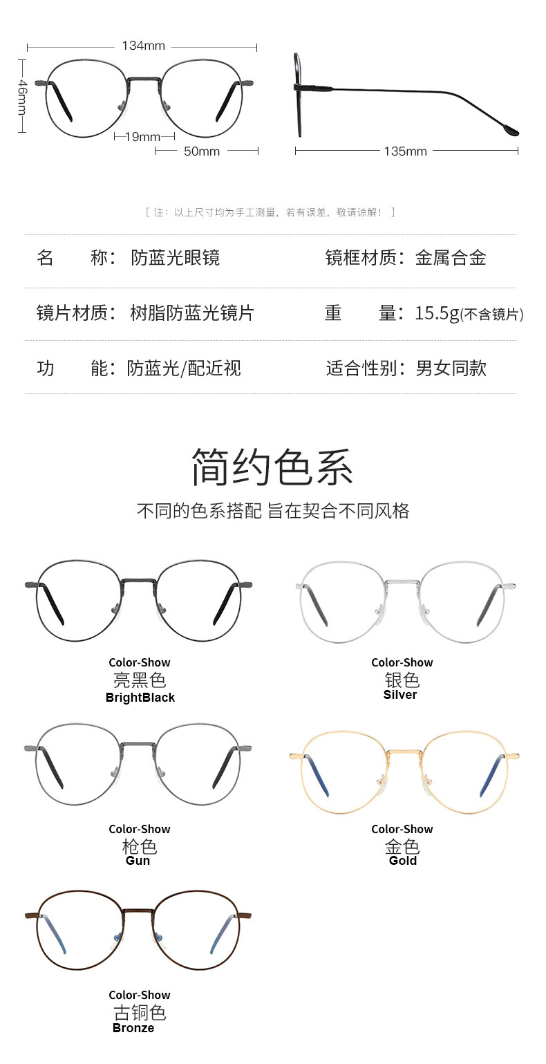- Size: lens width - 50 mm, bridge - 19 mm, temple - 135 mm, total width - 134 mm, lens height - 46 mm