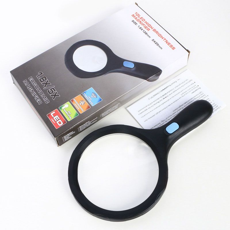 Лупа с универсальной подсветкой, увеличительное стекло с ручкой 6907B-XX, диаметр 138 мм, увеличение: 1,8Х, 5Х