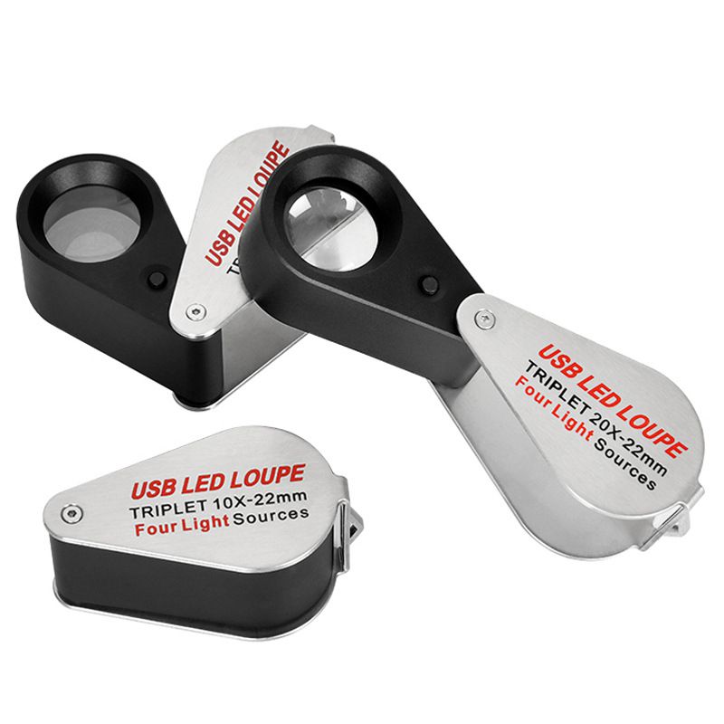 Лупа складная с универсальной подсветкой 7806-2-XX, диаметр: 22 мм, увеличение: 10X, 20X, 30X