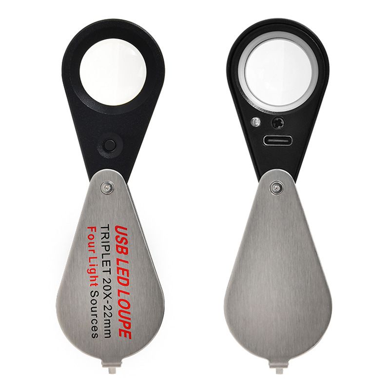 Лупа складная с универсальной подсветкой 7808-2-XX, диаметр: 22 мм, увеличение: 10X, 20X, 30X