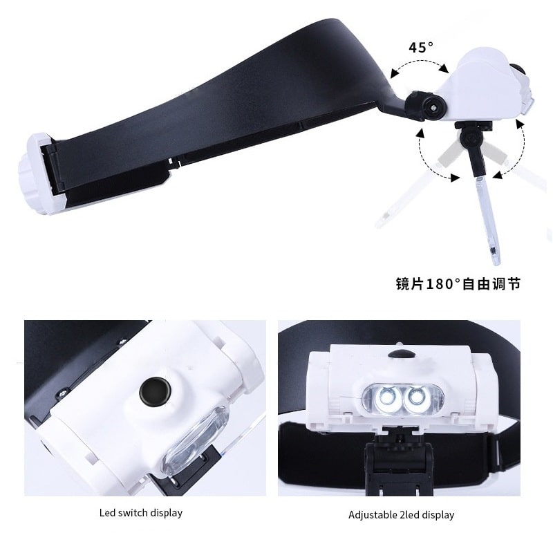 Бинокулярная лупа подходит для проведения различных работ с мелкими деталями. Специальная конструкция позволяет крепить лупу на голову и освобождать руки. У лупы есть LED-подсветка, угол наклона которой можно изменять.