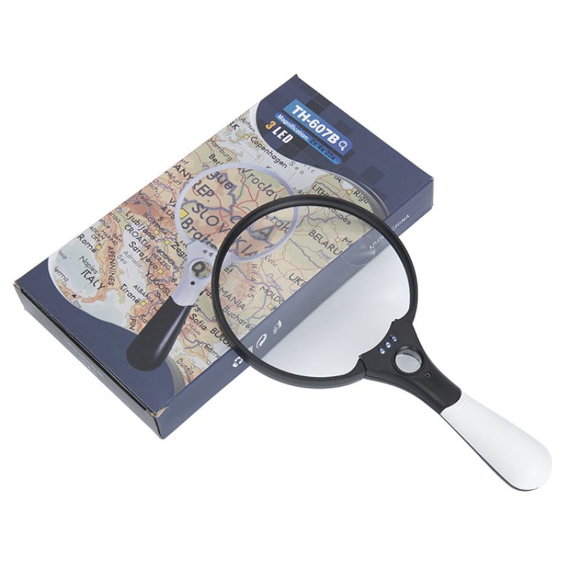 Magnifier with universal backlight, magnifying glass with handle 607B新款-XX, diameter 137 mm, magnification: 2Х, 4Х, 25Х
