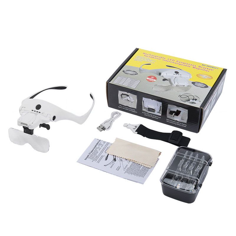 The binocular magnifier is suitable for various works with small details. The special design allows you to attach the magnifier to your head and free your hands. The magnifier has a LED backlight, the angle of which can be changed.