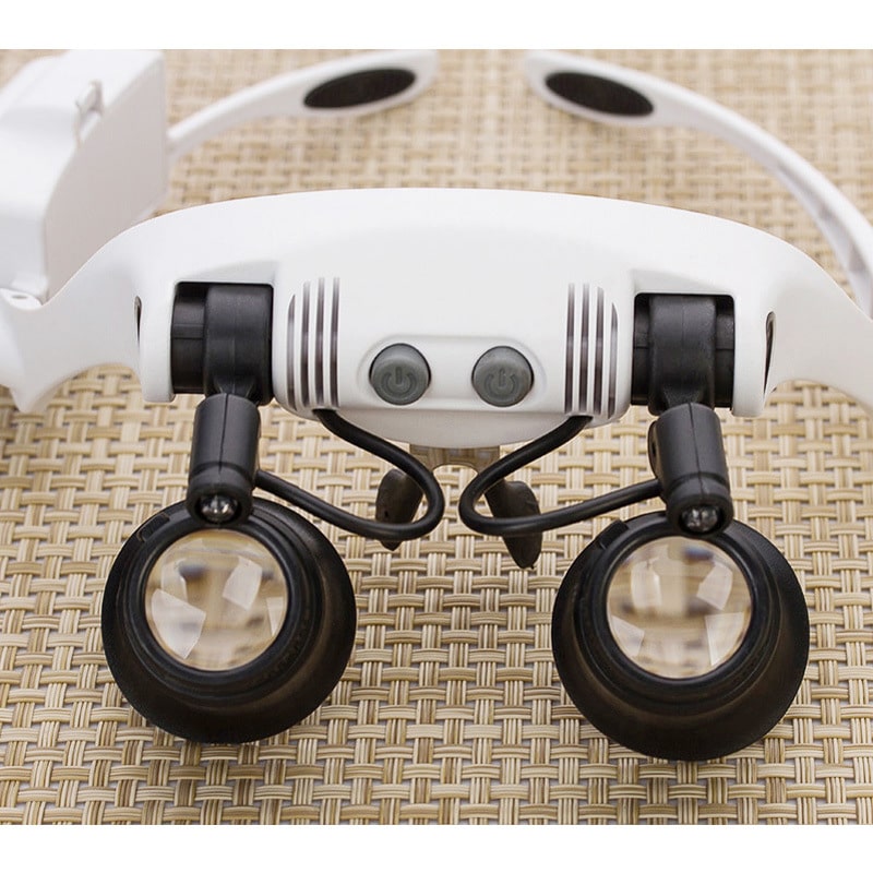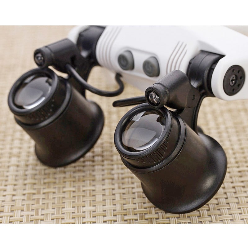 Binocular magnifier with backlight, magnifying glass with head mount 9892G-3A, diameter: 21 mm, magnification: 10X, 15X, 20X, 25X