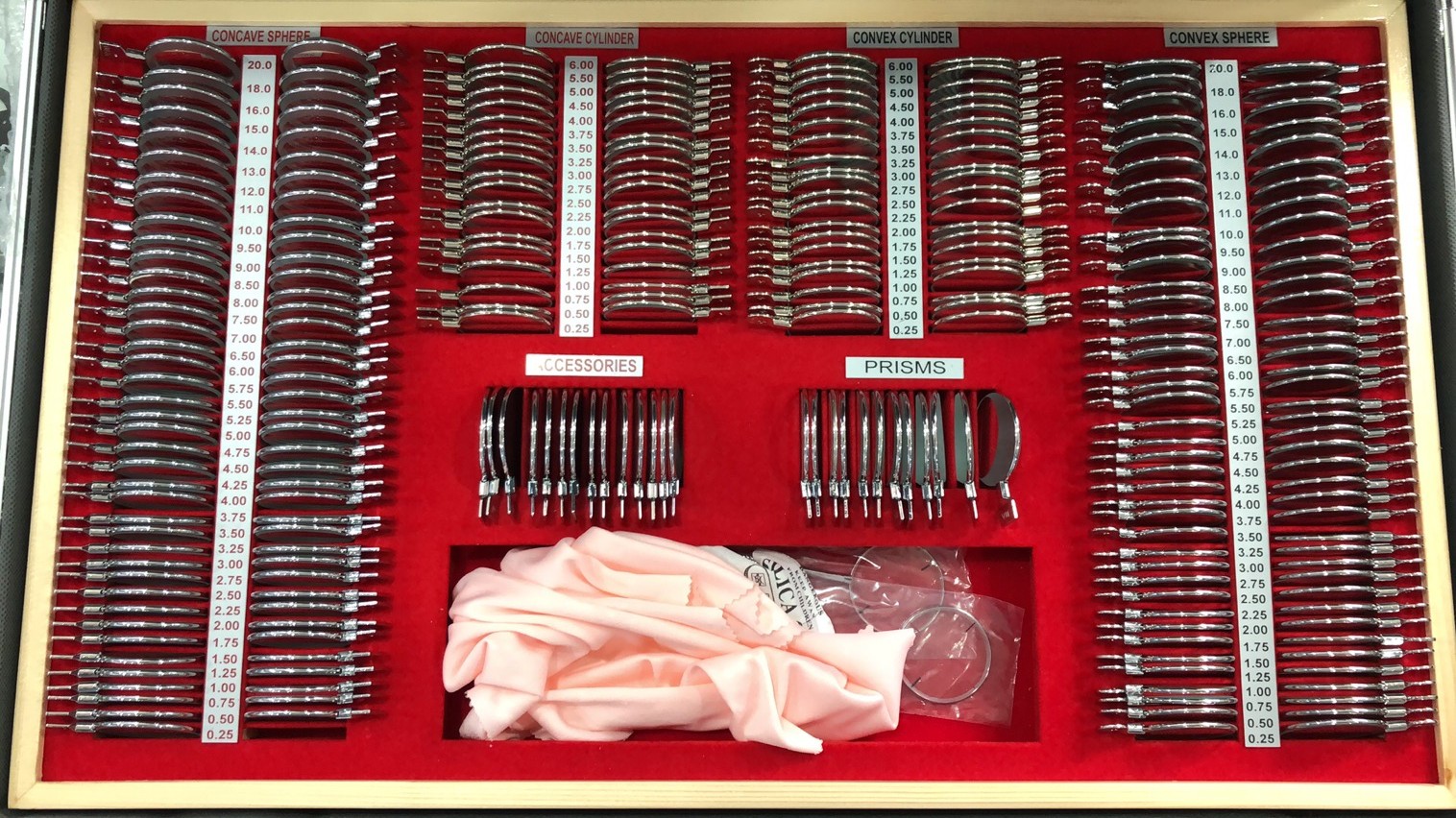 Наборы пробных очковых линз с оправой на 266 линз. Предназначен для обследования отклонений зрения, например, миопия, гиперметропия, астигматизм и пресбиопия, для обследования страбизма и цветовой слепоты. Набор пробных очковых линз используется в офтальмологических отделениях больниц, поликлиник, в оптических магазинах. Удобен в применении, как в стационарах, так и в условиях передвижных кабинетов.