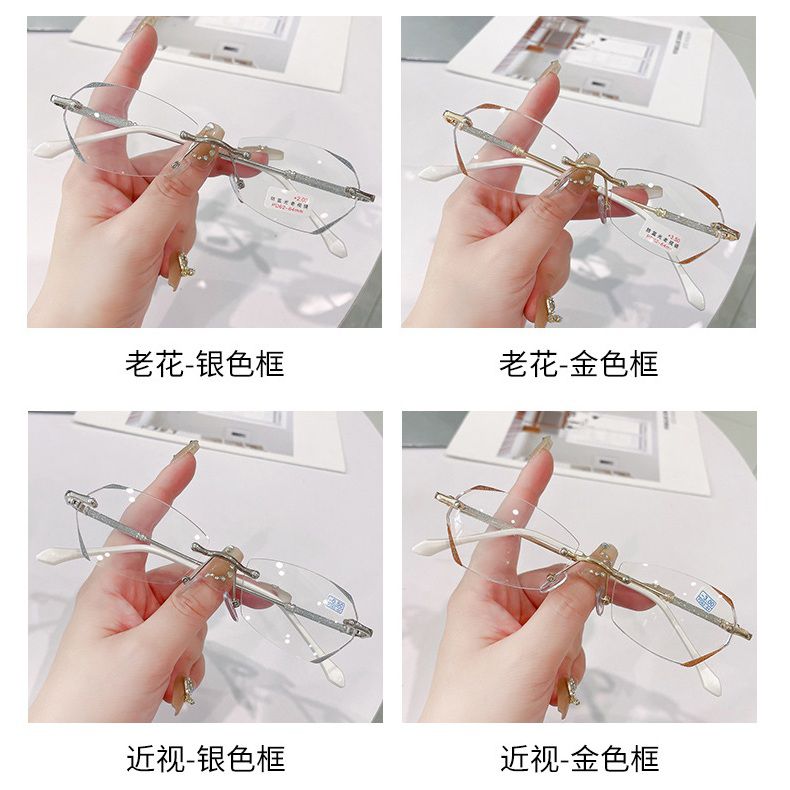Rimless metal eyeglasses for reading and distance 老花手拿1 with Blue ray cut, diopters from -4.00 to +4.00, PD62-64
