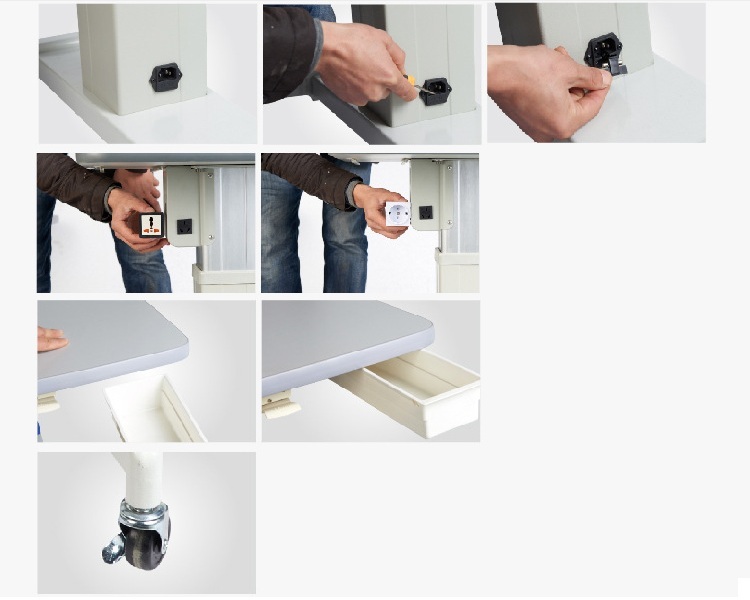 Электроподъемный приборный стол имеет электроподъёмный механизм с очень мягким ходом. Механизм запускается с помощью нажатия ногой педали. Мягкий механизм позволяет бережно передвигать приборы и технику на необходимую высоту, не сбивая при этом настройки приборов, расположенных на столешнице.
