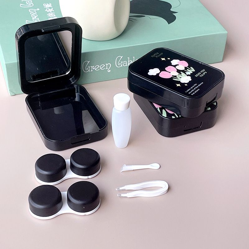 - Комплект: 2 контейнера для линз, пинцет, палочка для чистки линз, зеркало, флакон