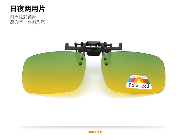 Насадка на очки с диоптриями. Имеет классический внешний вид. В наличии поляризационные линзы различных цветов, в том числе просветляющие жёлтые. Благодаря рассеивающим светофильтрам, насадка на очки способствует снижению усталости и напряжения глаз.