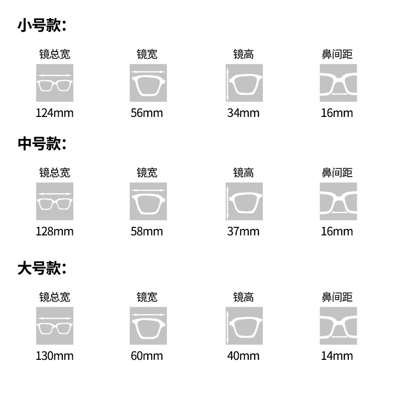 - Размер: ширина линзы - 56/58/60 мм, высота линзы - 34/37/40 мм, общая ширина изделия - 124/128/130 мм