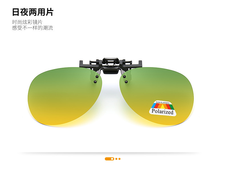 Насадка на очки с диоптриями. Имеет классический внешний вид. В наличии поляризационные линзы различных цветов, в том числе просветляющие жёлтые. Благодаря рассеивающим светофильтрам, насадка на очки способствует снижению усталости и напряжения глаз.