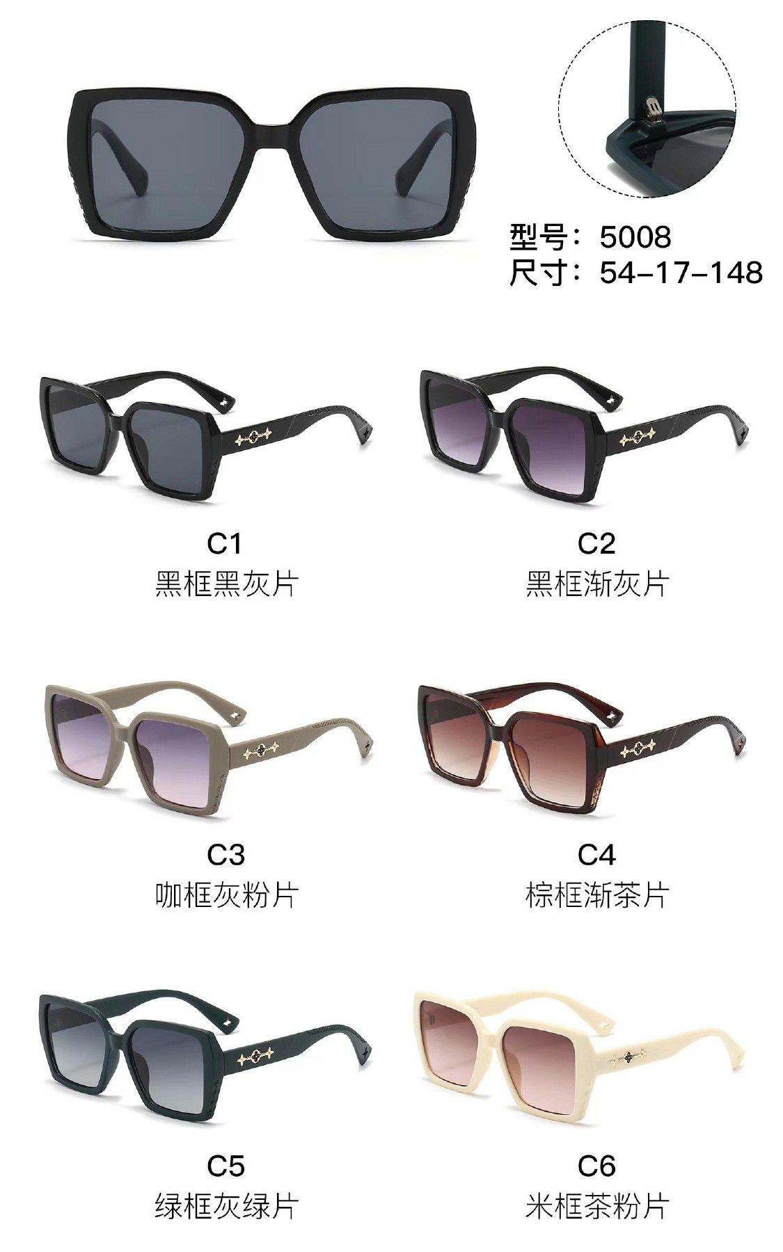 Солнцезащитные пластиковые очки из поликарбоната с металлическим шарниром 5008W