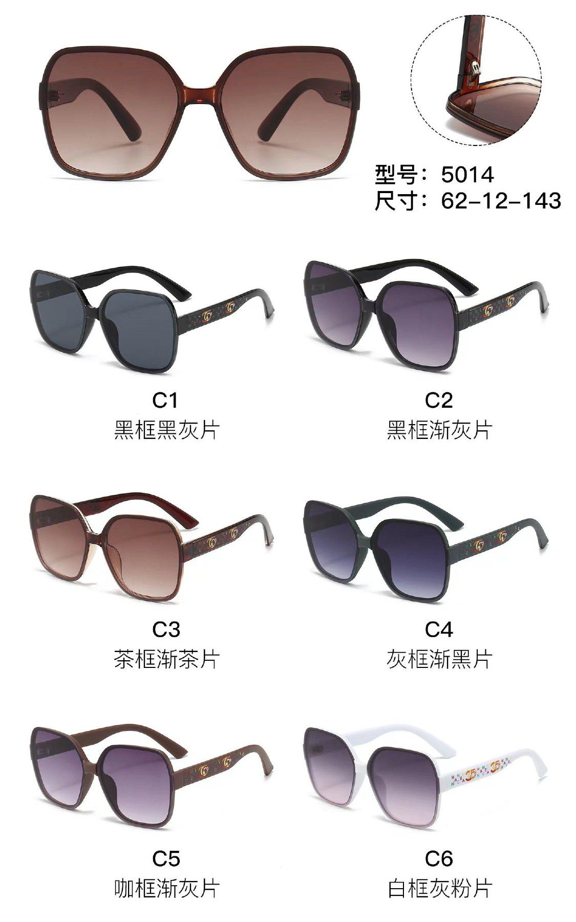 Солнцезащитные пластиковые очки из поликарбоната с металлическим шарниром 5014W