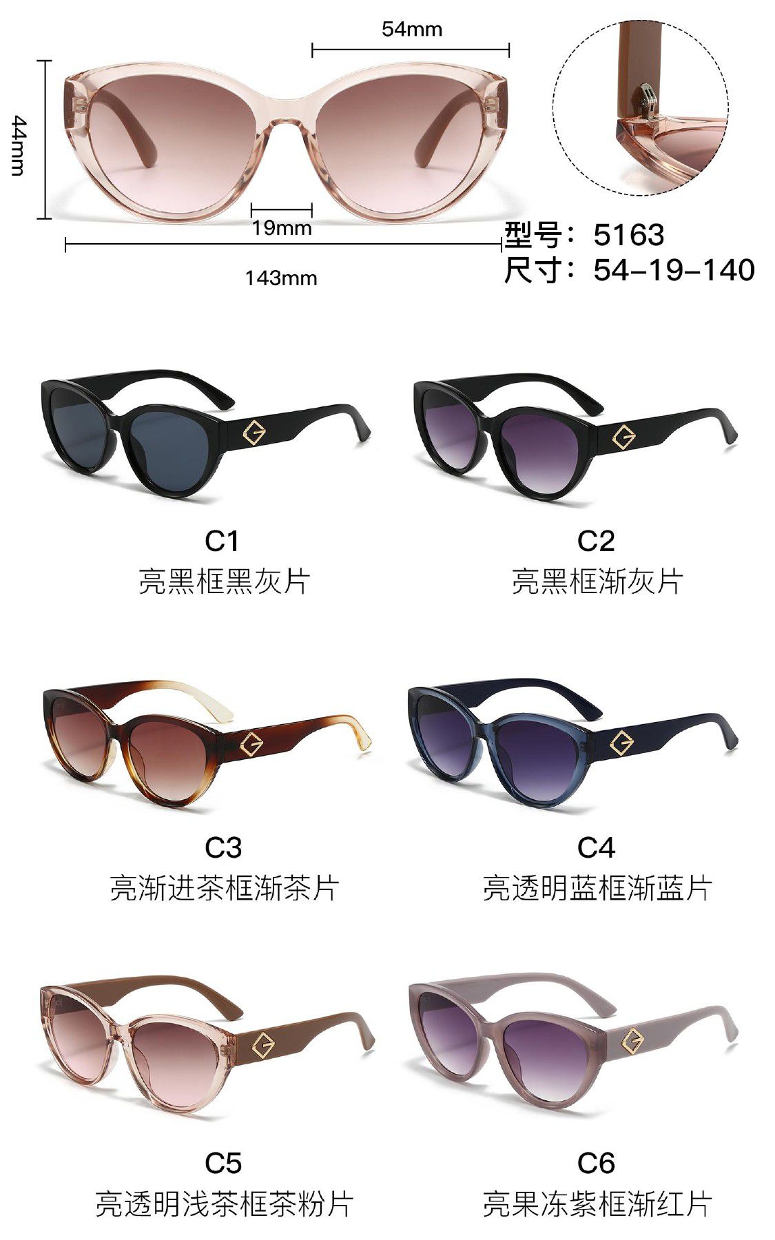 Солнцезащитные пластиковые очки из поликарбоната с металлическим шарниром 5163W