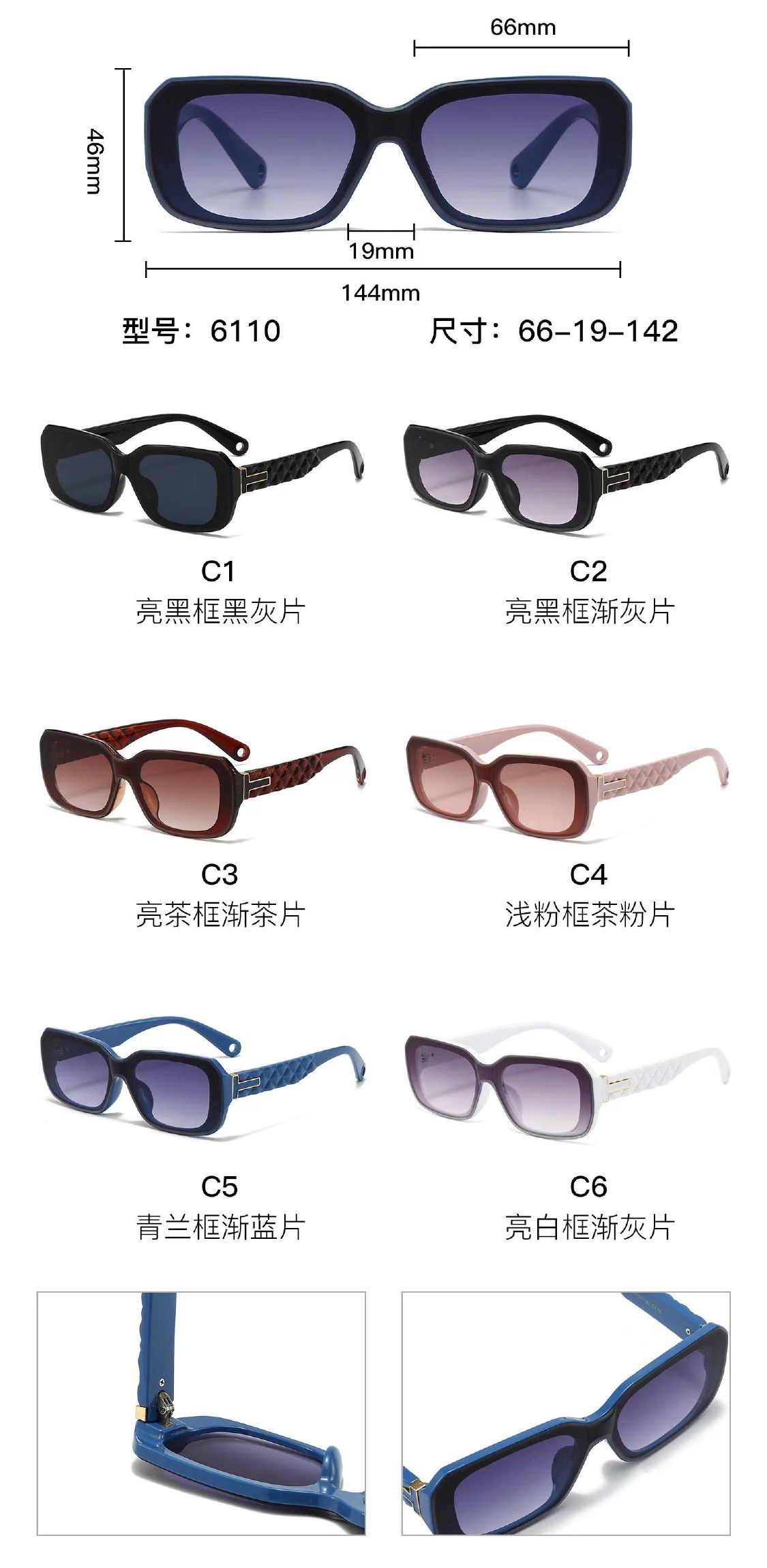 Солнцезащитные пластиковые очки из поликарбоната с металлическим шарниром 6110W