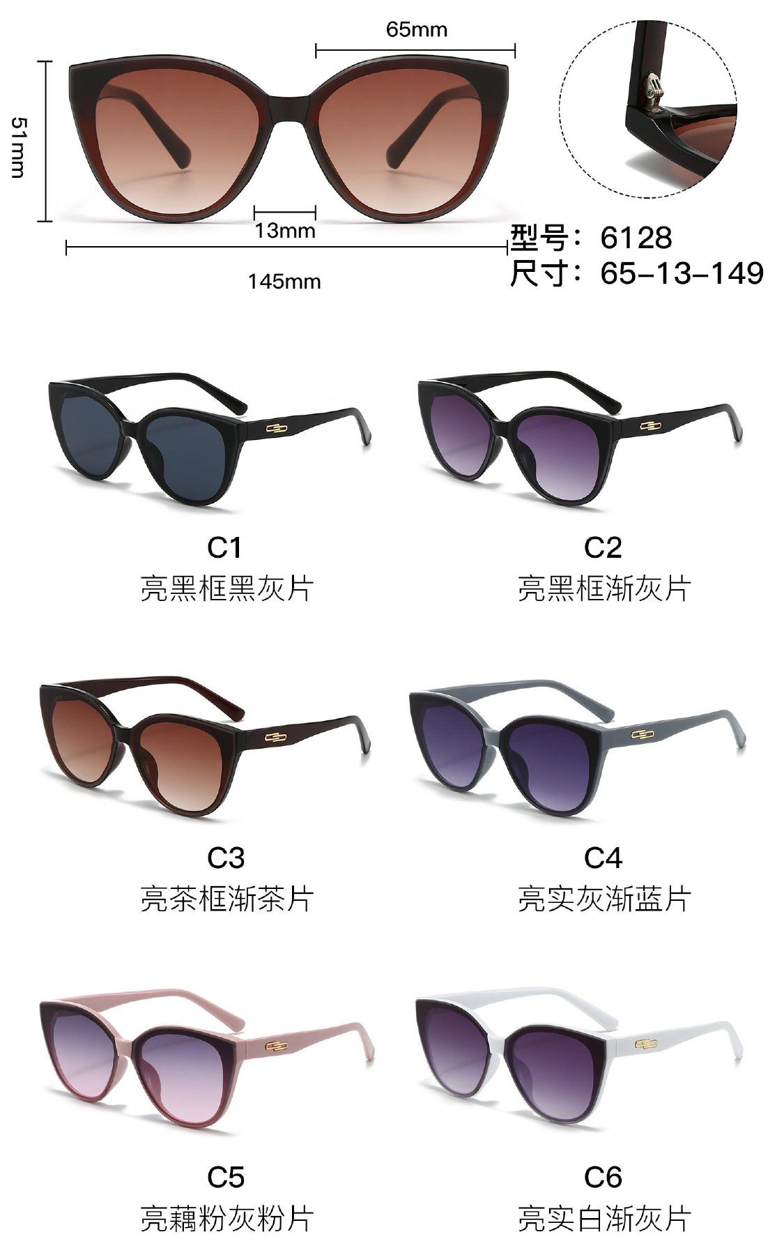 Солнцезащитные пластиковые очки из поликарбоната с металлическим шарниром 6128W
