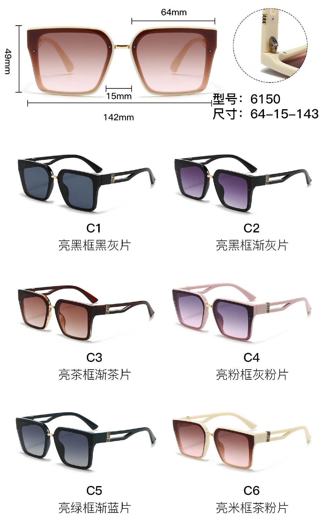 Солнцезащитные пластиковые очки из поликарбоната с металлическим шарниром 6150W