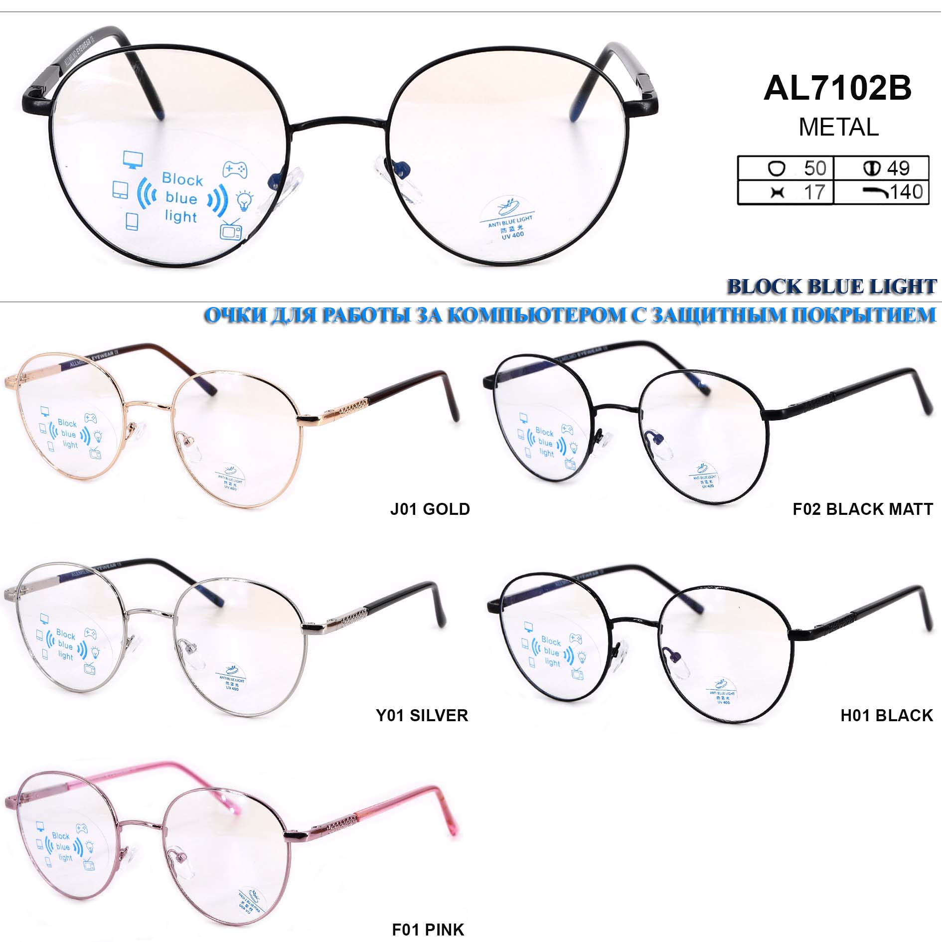 Очки в металлической оправе Blue Block Light Allmilmo AL7102B