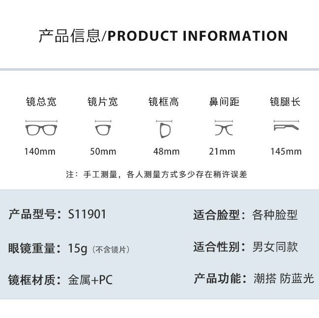- Размер: общая ширина -140 мм, ширина линзы - 50 мм, высота линзы - 48 мм, мост - 21 мм, длина заушника - 145 мм