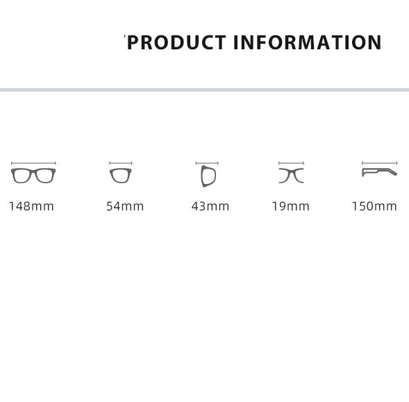 - Размер: общая ширина -148 мм, ширина линзы - 54 мм, высота линзы - 43 мм, мост - 19 мм, длина заушника - 150 мм