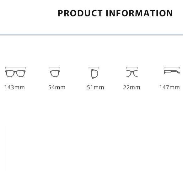 - Размер: общая ширина -143 мм, ширина линзы - 54 мм, высота линзы - 51 мм, мост - 22 мм, длина заушника - 147 мм