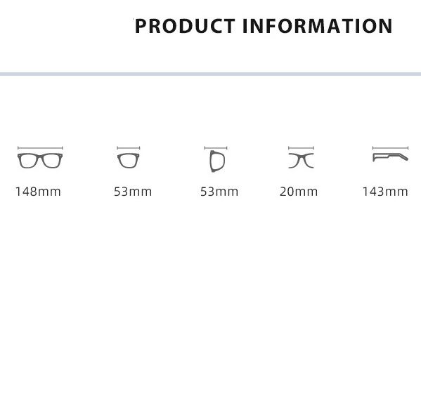 - Размер: общая ширина -148 мм, ширина линзы - 53 мм, высота линзы - 53 мм, мост - 20 мм, длина заушника - 143 мм
