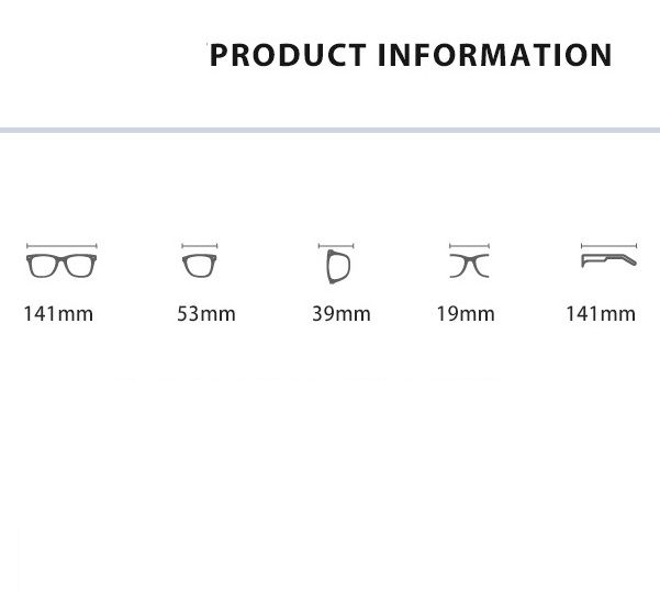 - Размер: общая ширина -141 мм, ширина линзы - 53 мм, высота линзы - 39 мм, мост - 19 мм, длина заушника - 141 мм