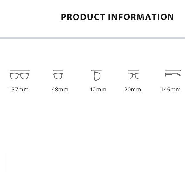 - Размер: общая ширина -137 мм, ширина линзы - 48 мм, высота линзы - 42 мм, мост - 20 мм, длина заушника - 145 мм