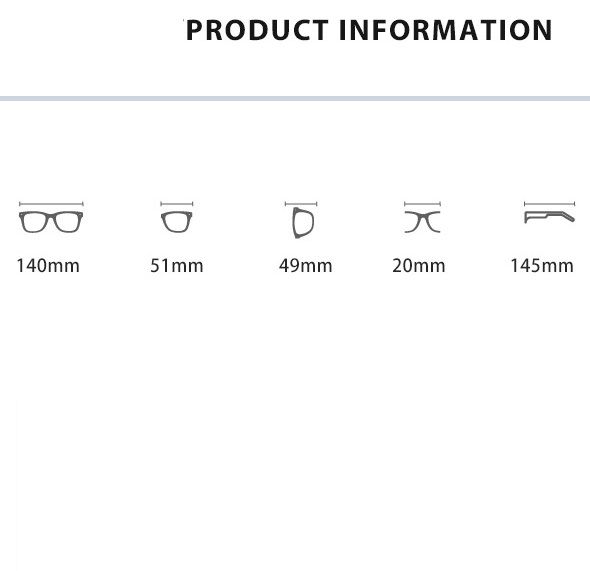 - Размер: общая ширина -140 мм, ширина линзы - 51 мм, высота линзы - 49 мм, мост - 20 мм, длина заушника - 145 мм