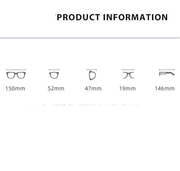 - Размер: общая ширина -150 мм, ширина линзы - 52 мм, высота линзы - 47 мм, мост - 19 мм, длина заушника - 146 мм