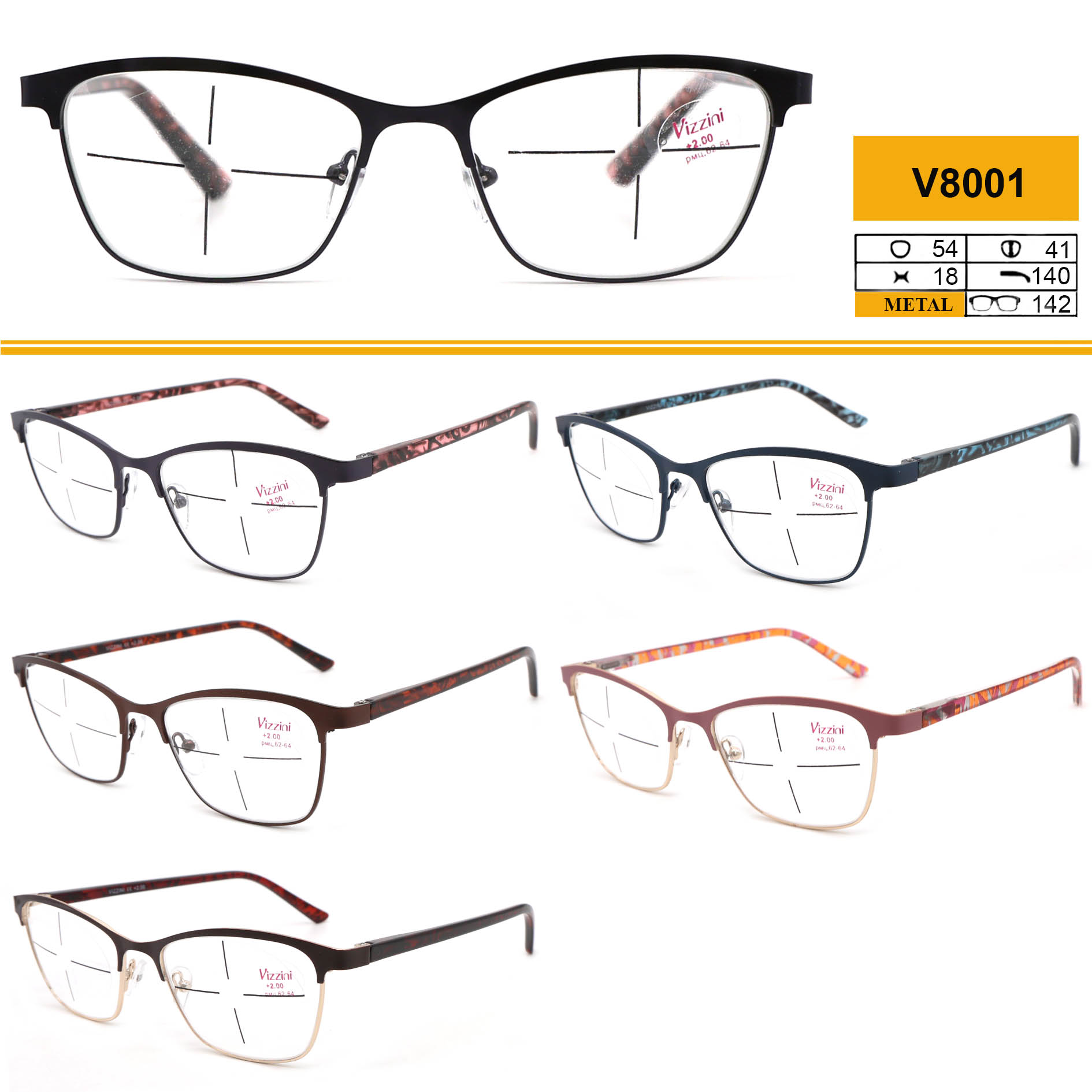 Очки готовые в металлической оправе Vizzini V8001 диоптрии +0.75 до +4.00 (шаг 0.25); от -1.00 до -4.00 (шаг 0.25)