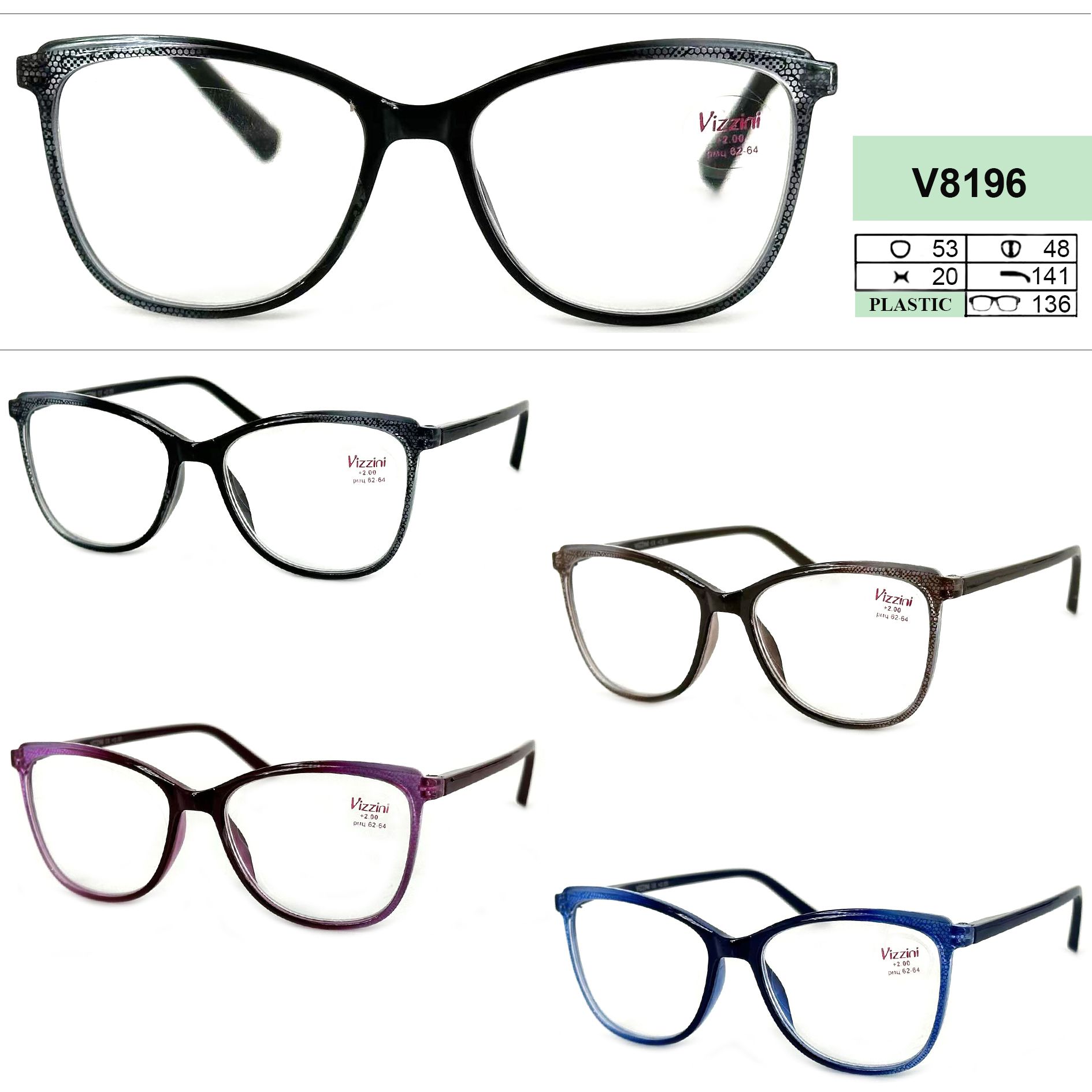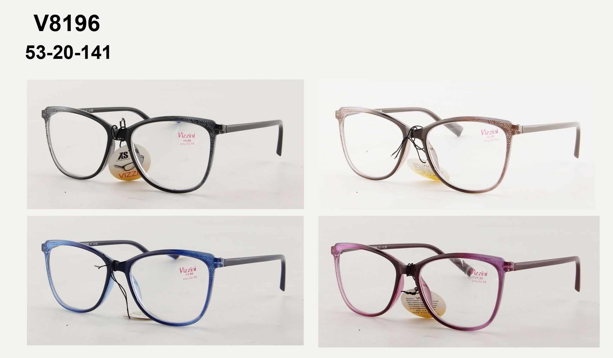Очки готовые женские в пластиковой оправе Vizzini V8196, диоптрии от +1.00 до +4.00 (шаг 0.25)