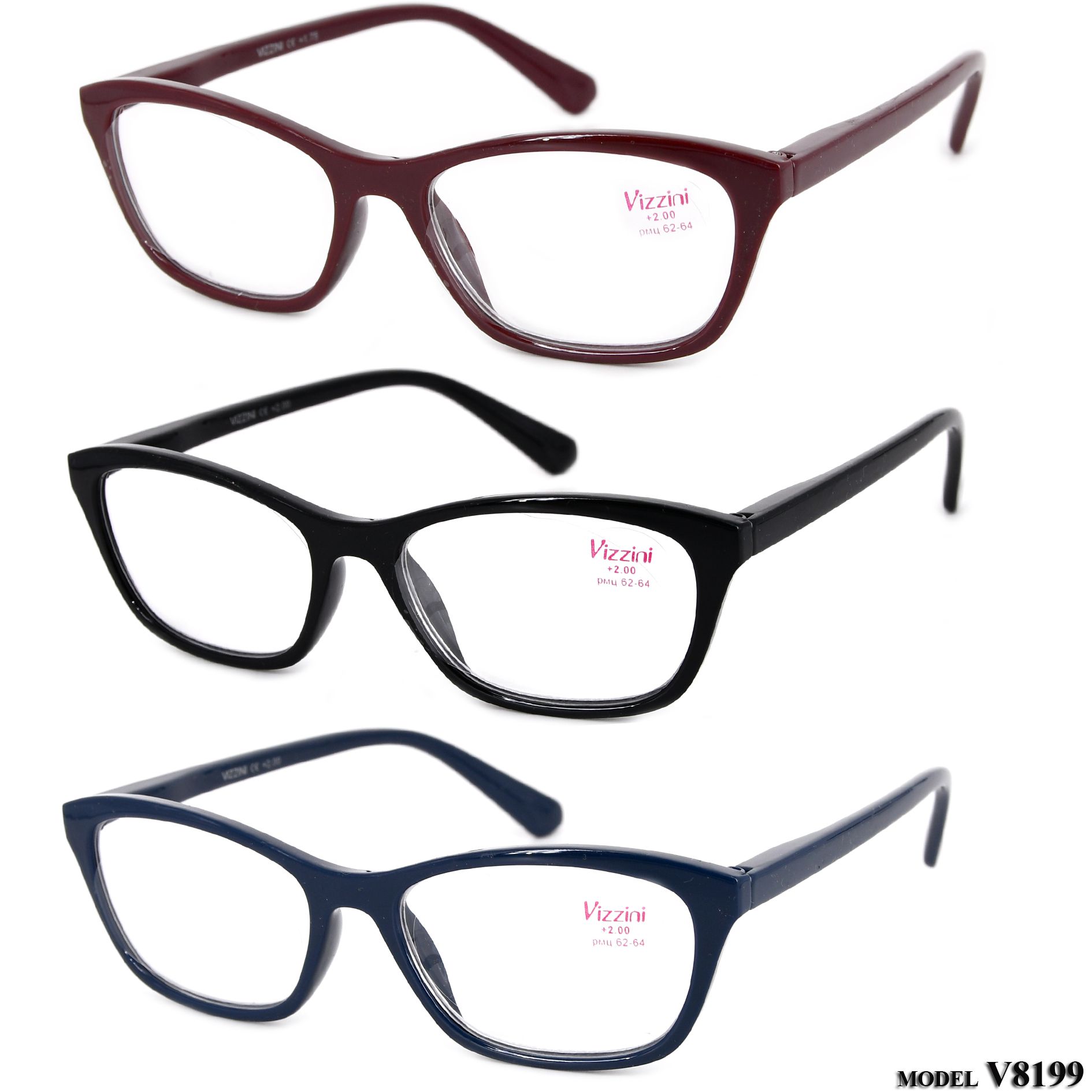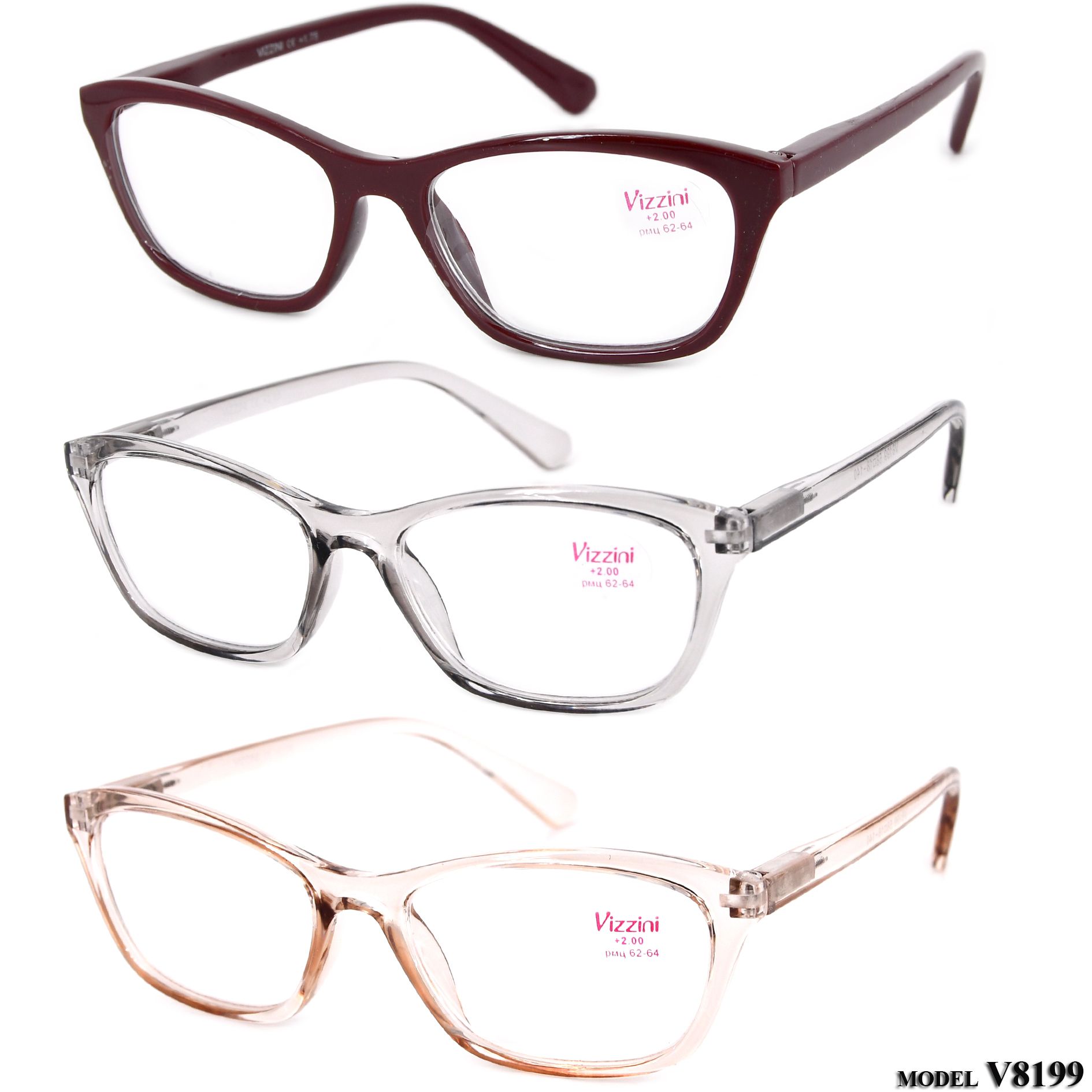 Очки готовые женские в пластиковой оправе Vizzini V8199, диоптрии от +1.00 до +4.00 (шаг 0.25)