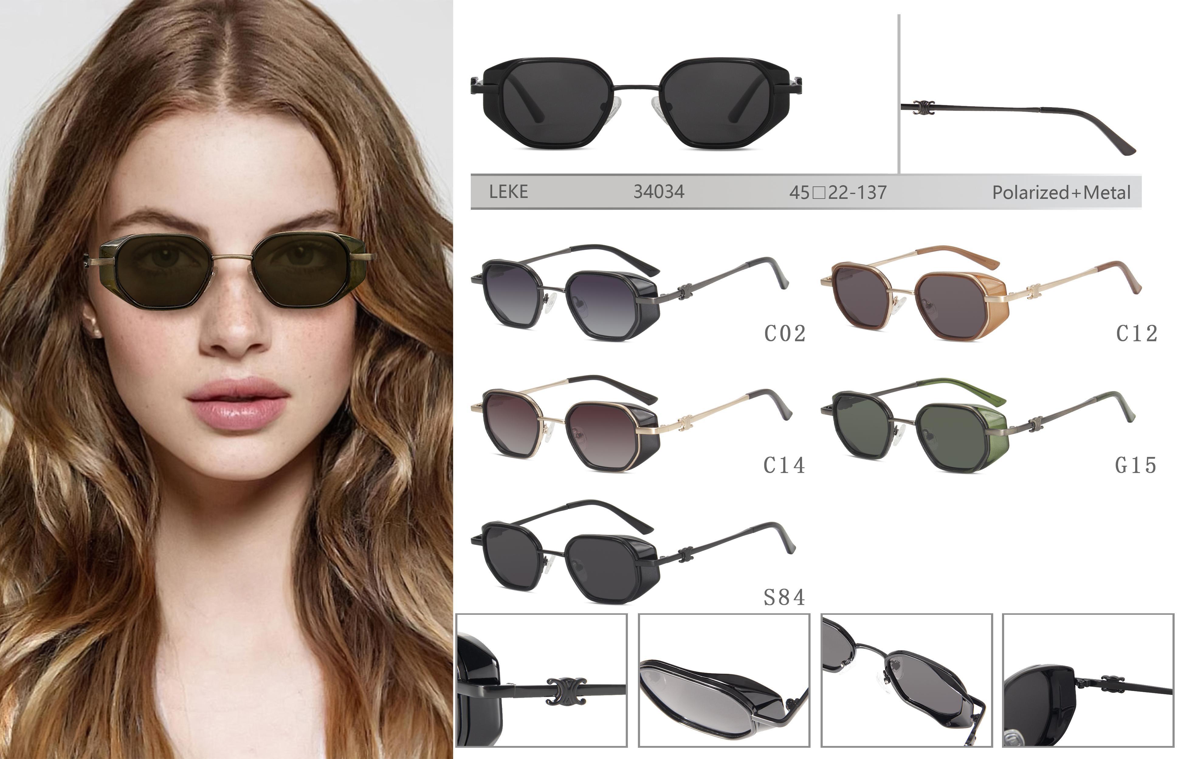 Солнцезащитные поляризационные женские металлические очки Leke LK34034