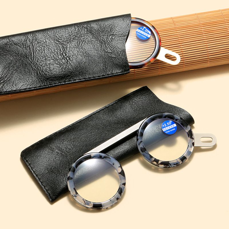 Очки-пенсне металлические для чтения 818 с защитой Blue ray cut и кожаным чехлом, диоптрии +2.50, РМЦ=62-64