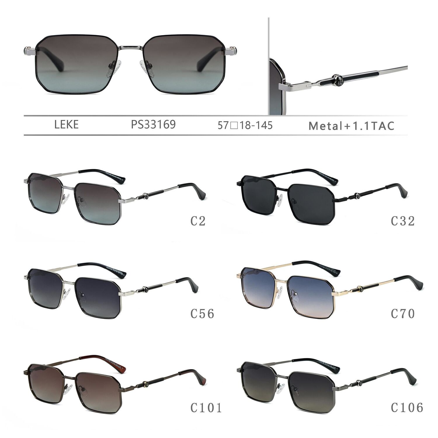 Солнцезащитные поляризационные металлические очки Leke PS33169