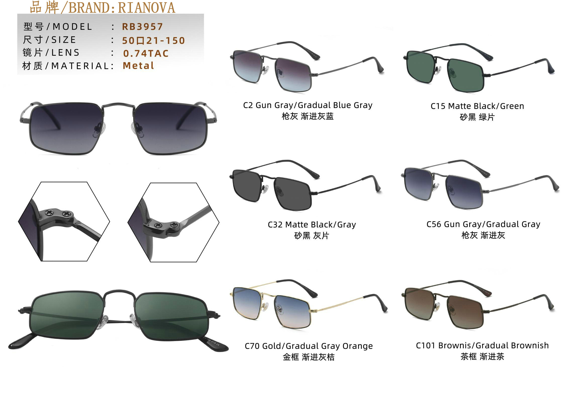 Солнцезащитные поляризационные металлические очки Rianova RB3957